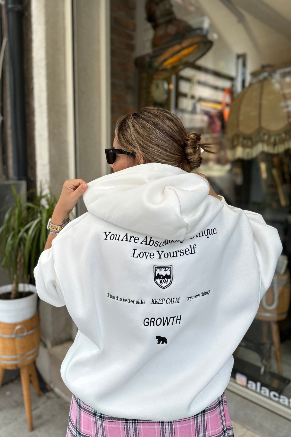 Arka Baskılı Şardonlu Kapşonlu Sweeet -beyaz