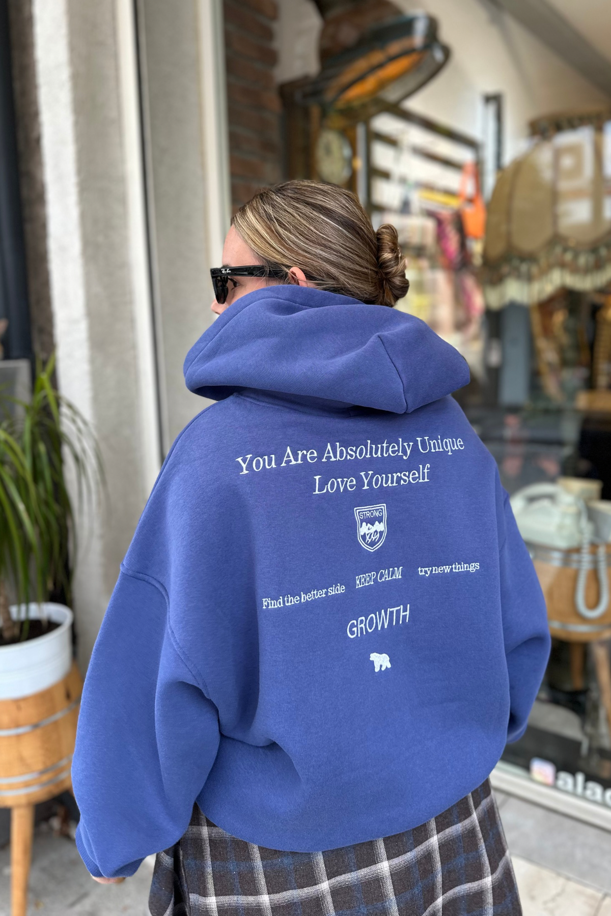 Arka Baskılı Şardonlu Kapşonlu Sweeet - mavi