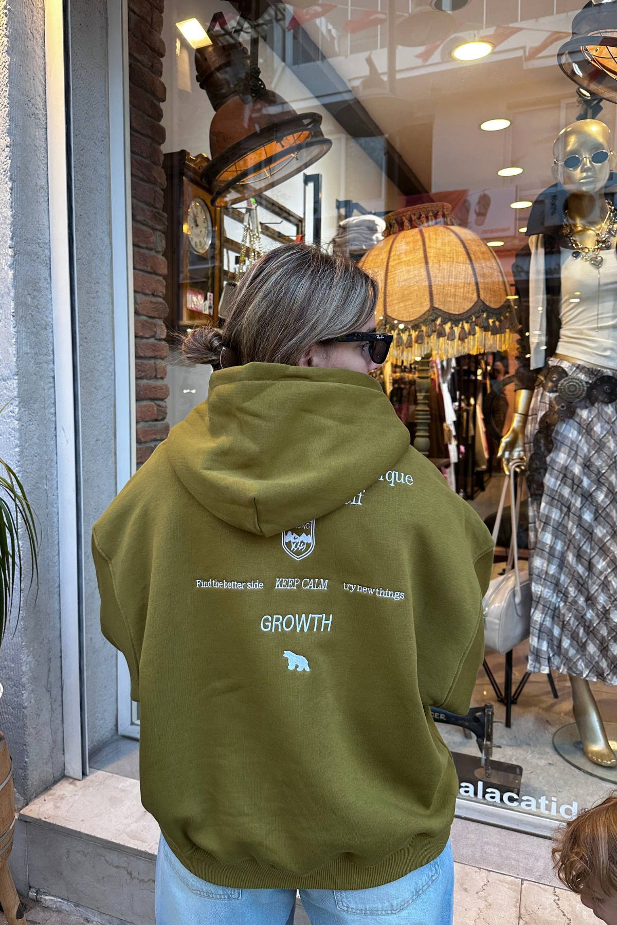 Arka Baskılı Şardonlu Kapşonlu Sweeet - yeşil