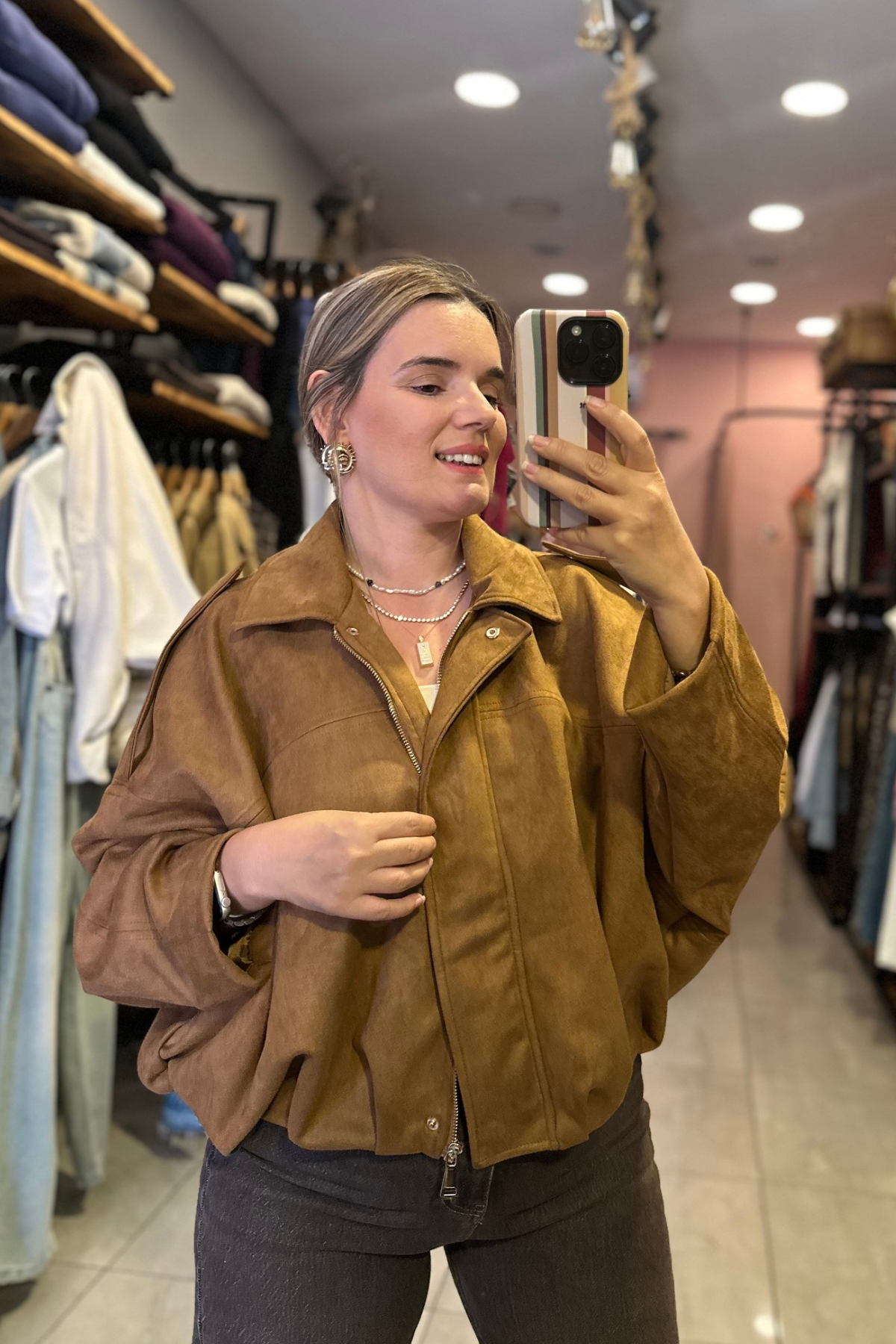 Nubuk Bommer Ceket - Taba