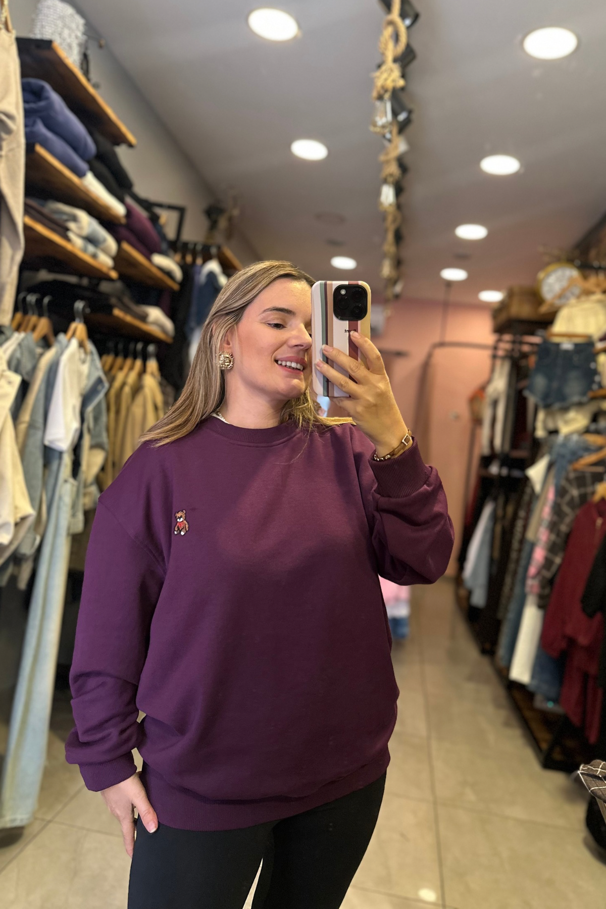 Şardonsuz Tedy Baskı Detay sweet - mürdüm